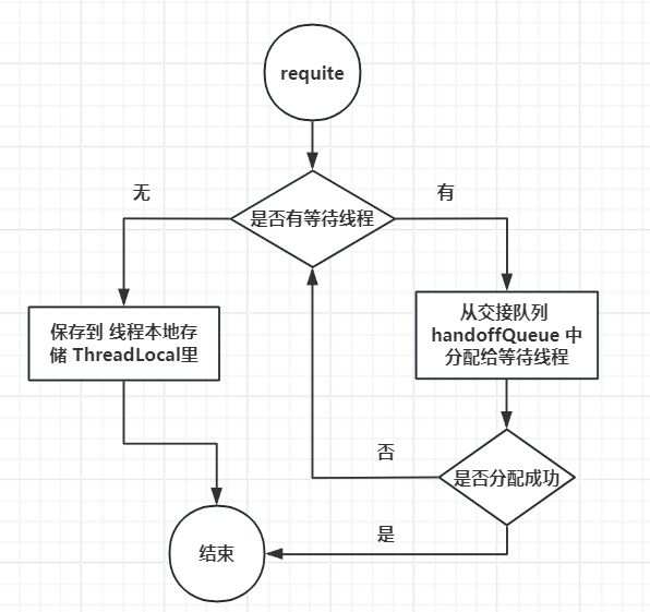 // 判断当前是否有等待连接资源的线程,判断当前创建的连接资源是否可以被使用,然后将资源方式交接队列中,如果失败了,那么就需要进行自旋操作