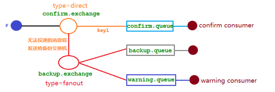 注意:备份交换机和消息回退接口同时存在,备份交换机优先级高