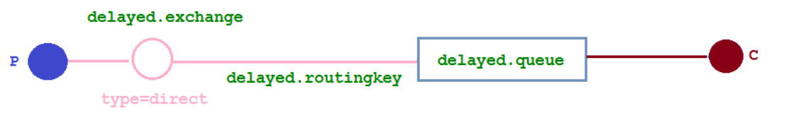 消息在延迟交换机处延迟,之后到达队列被消费。