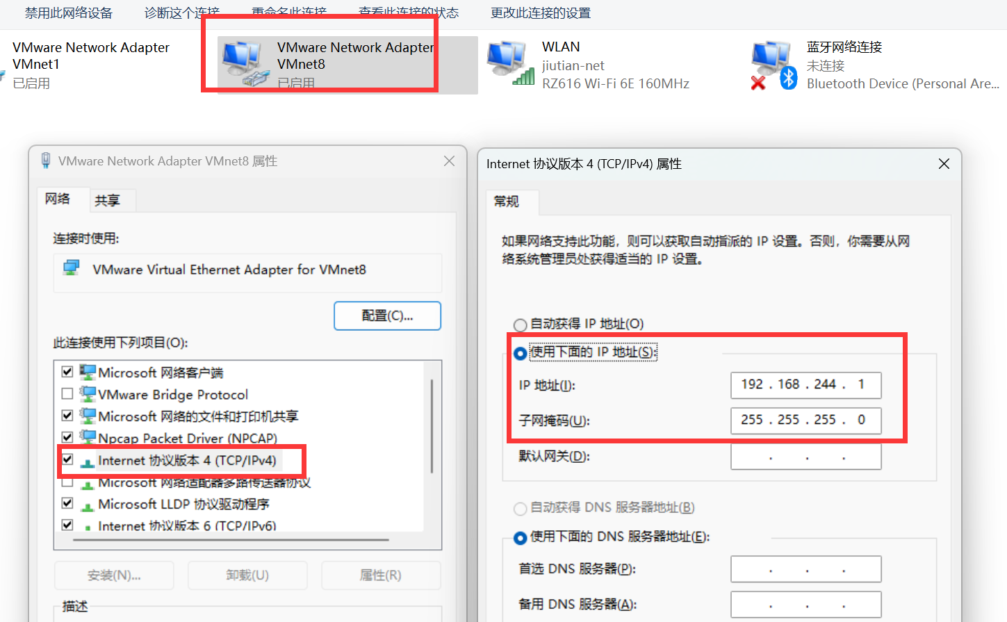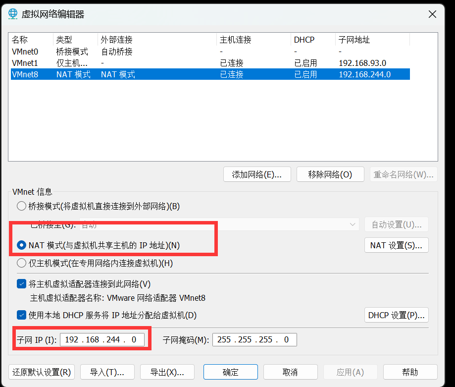 需要保证 IPADDR、NETMASK、GATEWAY 在同一网段,比如 192.168.244